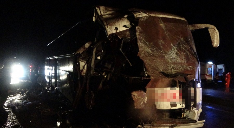 Kaza, saat 19.15 sıralarında, Bursa-Çanakkale karayolu üzerinde Lapseki ilçesine bağlı Şevketiye köyü yakınlarında meydana geldi. Edinilen bilgiye göre, İstanbul'dan Çanakkale'ye seyir halindeki A.U. yönetimindeki 34 ETC 950 plakalı yolcu otobüsü, önünde seyir halinde olan 06 DH 8513 plakalı çekicinin arkasında bulunan 34 EAK 002 plakalı kum yüklü dorseye çarptı. Ortalığın adeta savaş alanına döndüğü kazada 9 kişi yaralandı. Kazayı gören diğer sürücüler kazayı polis, jandarma ve sağlık ekiplerine bildirdi. Olay yerine çok sayıda ambulans sevk edildi. Lapseki Belediyesi kaza kırım ekibi tarafından otobüs içinde sıkışan yaralılar çıkarılarak, sağlık ekiplerine sevk edildi. Bazı yaralılar, yakınlarının yardımıyla Lapseki Devlet Hastanesi'ne yönlendirildi.