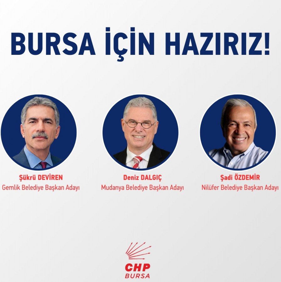 Cumhuriyet Halk Partisi'nin Bursa'da Gemlik, Mudanya ve Nilüfer ilçelerinin belediye başkan adayları Parti Meclisi toplantısının ardından açıklandı.