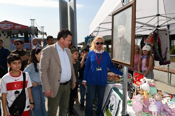 Osmangazi Belediye Başkanı Erkan Aydın, 23 Nisan kutlamalarının merkezi olan Osmangazi Meydanı’nı gezerek gönüllerince eğlenen çocuklar ile bir araya geldi. Çocukların eğlencelerine ortak olan Başkan Aydın, 23 Nisan kutlamaları kapsamında Kaplıkaya Huzur Evi Sakinleri ve Hüdavendigar Yetenek Evi resim sınıfı öğrencilerinin birlikte hazırladığı ‘İki Nesil Bir Tuval’ adlı resim sergisinin de açılışını yaptı. Huzurevi sakinleri ve çocukların birlikte tasarladıkları, çizdikleri ve boyadıkları resimlerden oluşan sergi, Osmangazi Meydanı’nı dolduran 7’den 70’e herkes tarafından beğenildi.