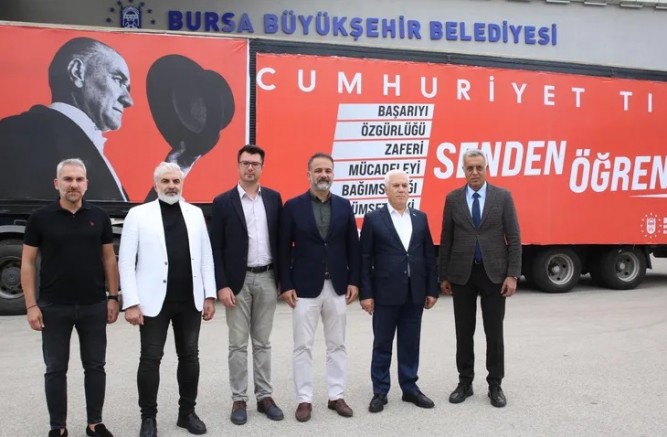 Bursa Büyükşehir Belediyesi iştiraklerinden Kültür AŞ tarafından özenle hazırlanan ‘Cumhuriyet Tırı’, bu yıl 101. yıl dönümü kutlanacak olan 29 Ekim Cumhuriyet Bayramı’nın heyecanını tüm ilçelere taşıyor. Ulu Önder Mustafa Kemal Atatürk'ün "Benim en büyük eserim" dediği Cumhuriyet'in değerlerini Bursalılarla buluşturan ‘Cumhuriyet Tırı’, Gemlik, Osmangazi, İznik ve Orhangazi’de vatandaşlara büyük bir coşku yaşattı. ‘Senden Öğrendik’ temalı Cumhuriyet Sergisi’ ilçelerde büyük ilgi görürken, Bilim Teknoloji Merkezi deney düzenekleri uygulamasına katılanlar keyifli anlar yaşadı. Cumhuriyet temalı kahoot yarışması ile büyük heyecan yaşayan Bursalılar, uzman isimlerin yer aldığı söyleşilerde Cumhuriyet’in değerlerini dinleme fırsatı buldu. Bursa Büyükşehir Belediyesi Kent Orkestrası’nın verdiği konserlerde ise vatandaşlar eğlenceli bir gün geçirdi.