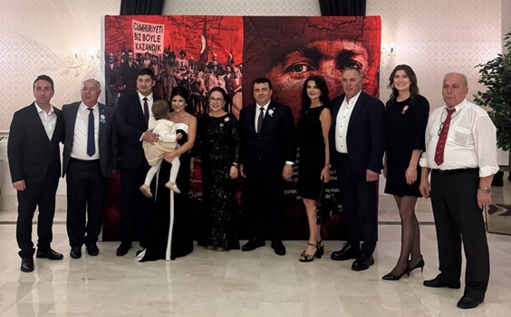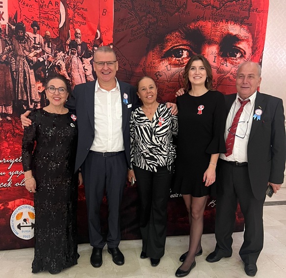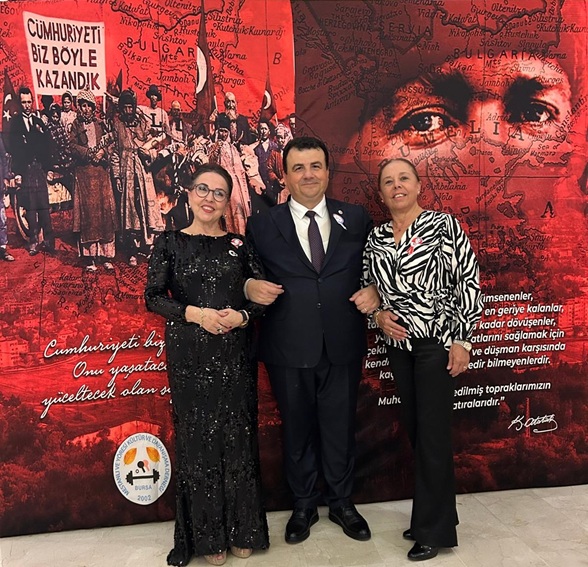 Cumhuriyetin 102. yılının kutlandığı özel geceye Bursa'daki Balkan ve Rumeli derneklerinin temsilcilerinin yanı sıra Bulgaristan'dan konuklar, siyasiler katıldı.