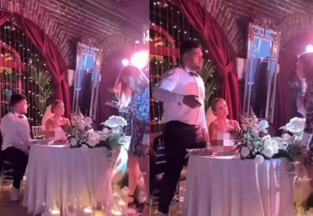 Sosyal medyadan paylaşılan görüntü kullanıcılar arasında gündem yaratırken binlerce izlenmeye de ulaştı. Görüntülerde düğün töreni sırasında damadın eski sevgilisinin düğünü basması geceye damga vurdu. Gelin ve damadın bulunduğu masaya giden eski sevgili damatla tartışmaya başladı. Öfkesine engel olmayan eski sevgili masanın üzerinde eline geçen ilk şeyi damada fırlattı.
