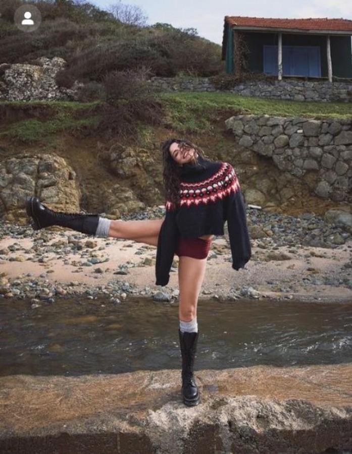 Kazak altına bikini altına benzer bir makro mini şort seçen Demet Özdemir'in tarzına yorum yağdı.