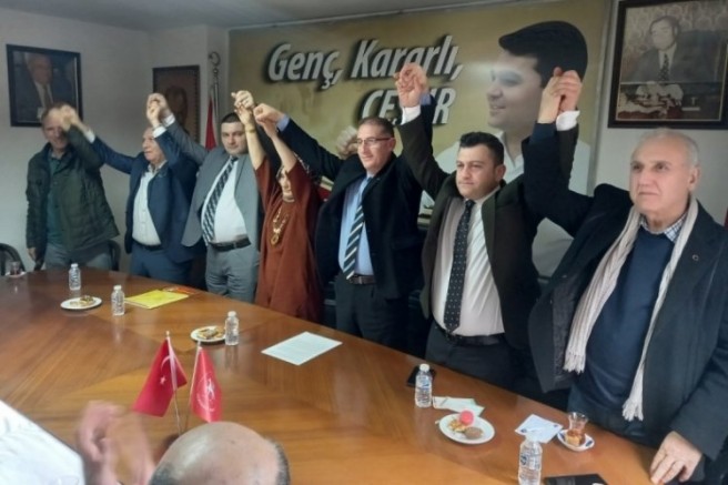 Yıldırım Belediye Başkanlığı adaylığı için Erhan Keskin'in adaylık açıklamasında İl Başkanı Çağrı Kaplan, GİK Üyesi Ahmet Okur, MKK Üyeleri Nazif Kara ve Engin Özkan, ilçe başkanları, belediye başkan ve meclis üyeleri adayları ve partililer katıldı.