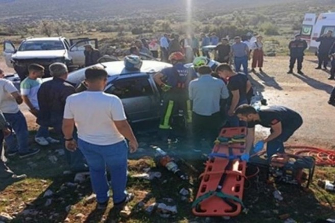 Denizli'nin Tavas ilçesinde, otomobil ile kamyonetin çarpıştığı kazada karı- koca yaşamını yitirdi, 1'i ağır 4 kişi yaralandı.
