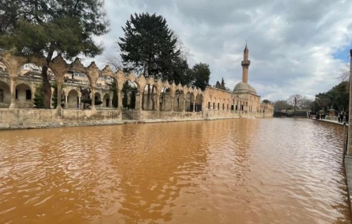 Hazreti İbrahim'in doğduğu ve ateşe atıldığı yer olarak rivayet edilen tarihi mekanda bulunan Balıklıgöl ve içindeki su havzasının berrak rengi, depremler nedeniyle değişti.