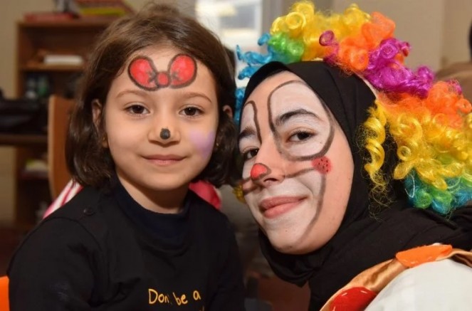 KYK Emir Sultan Erkek Öğrenci Yurdunda kalan depremzede minikleri ziyaret eden gönüllüler, yüz boyama, resim yapma, kitap okuma, oyuncak yapımı etkinlikleri gerçekleştirip giydikleri kostüm ve dansları ile minikleri kahkahaya boğdu.