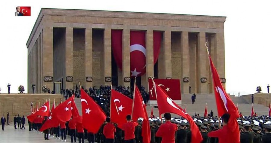 Cumhurbaşkanı Erdoğan ve devlet erkanı Anıtkabir'deki Atatürk'ün mozolesine çelenk bıraktı. İstiklal Marşı'nın ardından Cumhurbaşkanı Erdoğan Misak-ı Milli Kulesi'ne geçti ve Anıtkabir Özel Defteri'ni imzaladı. Cumhurbaşkanı Erdoğan Anıtkabir Özel Defteri'ne şu ifadeleri yazdı: "Vefatınızın 85'inci sene-i devriyesinde zatı alinizi, silah arkadaşlarınızı, kahraman şehitlerimizi yad ediyoruz. İlk asrını büyük bir gururla geride bıraktığımız Türkiye Cumhuriyetini ilelebet payidar kılmak için aşkla çalışıyoruz. Türkiye Cumhuriyetini her alanda yüceltmeye devam ediyoruz. Türkiye'nin yükselişine Türkiye Yüzyılı'nın inşasına hiçbir güç engel olamayacaktır."