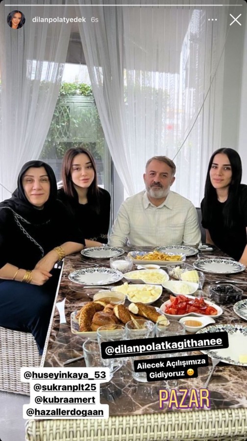 'Ailecek açılışa gidiyoruz' notuyla Dilan Polat Yedek hesabında paylaşılan karede Dilan Polat'ın kayınvalidesi Şükran Polat, Engin Polat'ın kız kardeşi Kübra ve Engin Polat'ın erkek kardeşinin nişanlısı Hazal Erdoğan'ın yanı sıra çiftin avukatı Hüseyin Kaya da yer aldı.