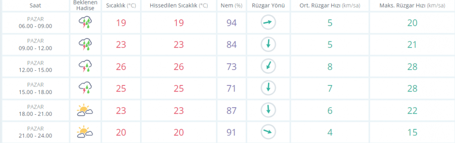 Parçalı ve çok bulutlu, gece saatlerinden itibaren yerel olmak üzere aralıklı sağanak ve gök gürültülü sağanak yağışlı geçeceği tahmin ediliyor. Yağışların; yer yer kuvvetli olması bekleniyor.