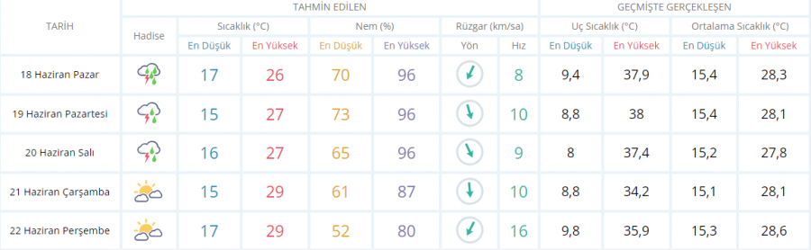 5 GÜNLÜK TAHMİNİ
