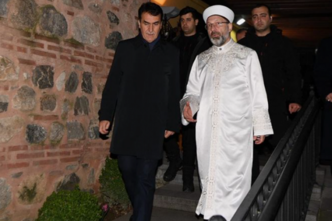 Diyanet İşleri Başkanı Prof. Dr. Ali Erbaş Bursa Sümbüllü Bahçe Konağı'nda, Osmangazi Belediye Başkanı Mustafa Dündar'ı ziyaret etti.