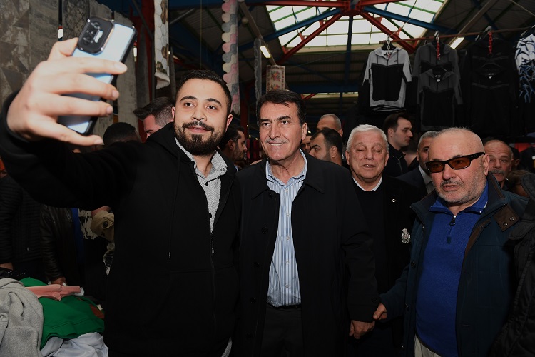 Başkan Dündar, vatandaşlara bu zamana kadar yaptığı ve yeni dönemde yapacağı hizmetleri anlatmak için Hamitler Mahallesi’ndeki modern kapalı pazar alanı gezerek burada vatandaşlarla buluştu. Pazarda büyük ilgi gören Dündar, yoğun ilgiden pazar alanında yürümekte zorluk çekerken, vatandaşlar fotoğraf çektirmek için birbiriyle yarıştı.