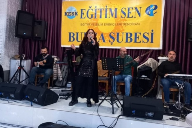 Eğitim Sen Bursa Şube Başkanı Derviş Erdem ve sendika yönetimi tarafından düzenlenen etkinliğe Nurcan Değirmenci sesi ve ezgileriyle renk kattı. Bursa Şube Başkanı Derviş Erdem; 29 yıldır her türlü baskı, tehdit, yasak ve engellemelere rağmen birlik, dayanışma ve mücadele anlayışıyla başlattıkları onurlu yürüyüşlerine ilk günkü gibi büyük bir dirençle ve kararlılıkla sürdürdüğünü söyledi. Erdem; " Eğitim Sen, eğitim ve bilim emekçilerinin eğitimde ve toplumsal yaşamda oluşturulmak istenen karanlığı yırtan fiili mücadelesi sonucunda okullarda, üniversitelerde, eğitim kurumlarında inşa edilmiş, eğitim ve bilim emekçilerinin sesi, taleplerinin takipçisi olarak mücadeleci kimliğinden ödün vermeden 29 yılı geride bırakmıştır. Yakın zamanda yaşanan çevre felaketinden dolayı oldukça üzgünüz.