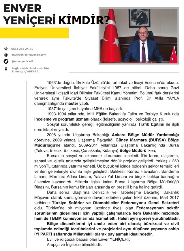 14 Mayıs'ta yapılacak Cumhurbaşkanlığı ve milletvekili seçimlerine sayılı günler kaldı. Bursa İyi Parti 2. Bölge Aday Adayı Enver Yeniçeri milletvekili olarak seçilirse, Bursa için hayata geçirmeyi planladığı projeleri BSHaberler'e anlattı.