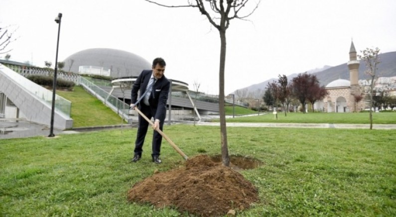 Osmangazi Belediyesi, Bursa'nın sembolü olan ve morumsu pembe tonda çiçekler açarak baharın gelişini müjdeleyen 500 erguvan ağacını toprakla buluşturdu.