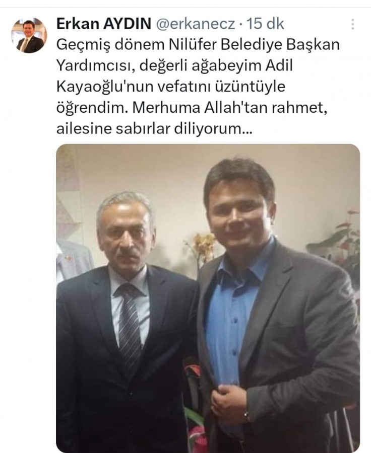 TBMM 25, 26 ve 27. dönem CHP Bursa milletvekili Erkan Aydın da sosyal medya hesabı üzerinden başsağlığı diledi.