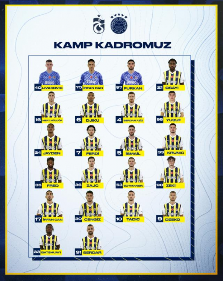 Süper Lig'de 30. haftanın en önemli mücadelesinde Fenerbahçe'nin kadrosu açıklandı. Sarı-lacivertlilerde 5 isim kadroda yer almadı.