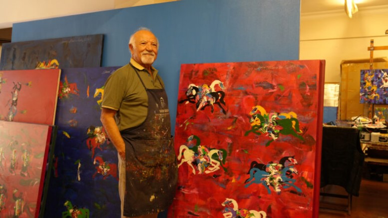 Anadolu kültüründen, folklorundan, yerel birikimle beslenen Karakoç’un resimlerinde tema atın çok ötesine geçiyor. Sanatçının resimleri bir olay, bir öykü anlatmıyor. Soyut, kaotik ve görsel doku zenginliğiyle oluşturduğu arka plan üzerindeki atlar resmin temel elemanı olarak varlık buluyor, aynı kullandığı coşkulu renkler gibi. At imgeleri özgür tekrarlarla, fırça darbeleriyle perspektifsiz, minyatürvari bir ortamda ritim oluşturuyor ve müzikal bir tınıyı görsel olarak algılatıyor. Atlar Karakoç’un resminde “özgürlük” kavramıyla örtüşmüş olarak resimsel ifadenin amacı olarak yer ediniyor.