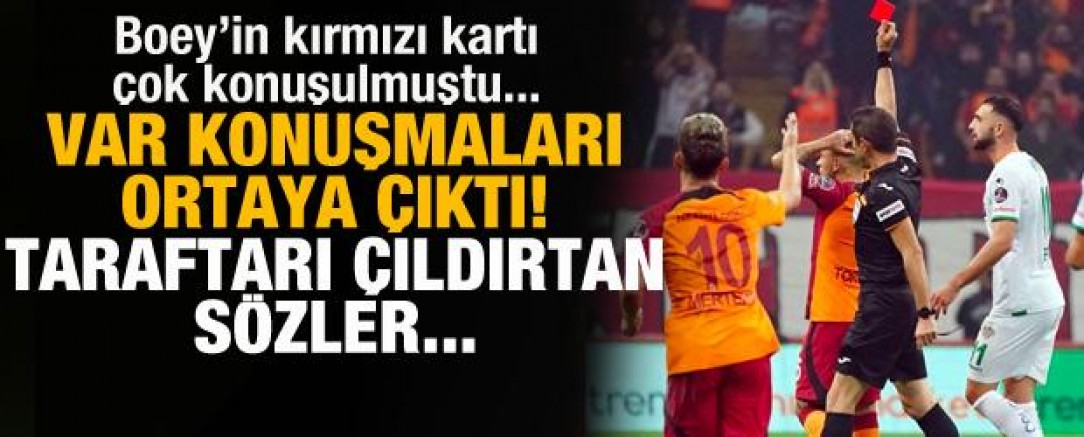 Karşılaşmaya ise verilen hakem kararları damga vurdu. Özellikle sarı kırmızılı futbolcu Sacha Boey'in kırmızı kart gördüğü pozisyona büyük tepki gösterilirken, flaş bir gelişme yaşandı. Bütün Türkiye'nin tartıştığı Sacha Boey'in gördüğü kırmızı karttaki 'VAR' diyaloğu ortaya çıktı.