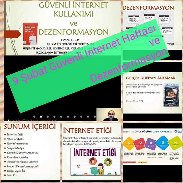 Bilişim öğretmeni Hasan ERSOY güvenli internet kullanımı ve dezenformasyon konusunda proje ortakları ve öğrencilerini dijital zorbalık, siber güvenlik, eGüvenlik, dijital ayak izi gibi faydalı bilgiler verdi.