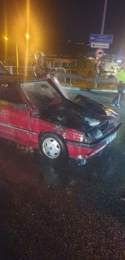 Olay, Gemlik Terminal Köprüsü üzerinde meydana geldi. Seyir halindeki 16 V 3134 plakalı otomobilin motor kısmından birden alevler çıkmaya başladı. Çevredeki vatandaşların ihbarı üzerine bölgeye itfaiye ekipleri sevk edildi. İtfaiye ekipleri yanan otomobili kısa sürede söndürürken, yol kısa süreliğine trafiğe kapandı. Yanan otomobilde hasar meydana gelirken, polis ekipleri yolu kontrollü olarak trafiğe açtı.