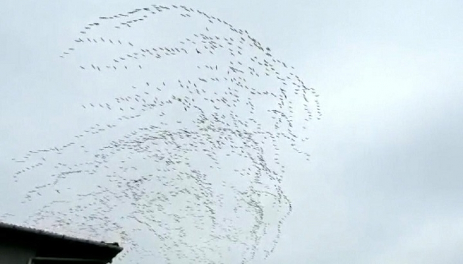 Baharın müjdecisi olarak bilinen leylekler, ilkbahar mevsiminin gelmesiyle beraber, sürüler halinde sıcak bölgelere göç ediyor. Yüz binlerce leyleğin aynı anda havada dans edercesine uçtuğu o anlar görüntülendi.