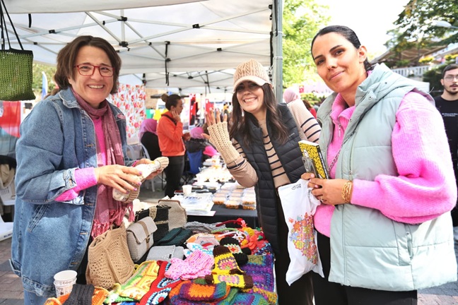 Bu tür etkinliklerin kadınların ekonomiye katılımı ve çalışmalarının tanıtımı açısından büyük önem taşıdığını vurgulayan dernek ve kooperatif temsilcileri, kadınlara her alanda ve her zaman destek veren Büyükşehir Belediye Başkanı Mustafa Bozbey’e teşekkür etti. Bursa Kent Konseyi Sağlık Çalışma Grubu da Büyükşehir Belediyesi’nin 1-31 Ekim Meme Kanseri Farkındalık Ayı etkinlikleri kapsamında alanda yerini aldı. Tıp fakültesi öğrencilerinden oluşan genç sağlıkçılar, bilgilendirme yaparak meme kanserine dikkat çekmek amacıyla pembe renkli kurdele dağıttı. Meydan Kadınların Projesi, kentin farklı noktalarında Bursalılarla buluşmaya devam edecek.