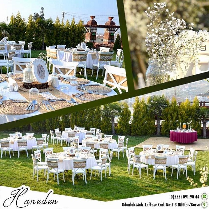 Haneden Kır Düğünü ve Davet Nilüfer İlçesi'nin, Odunluk Mahallesi, Lefkoşe Caddesi No: 113'te bulunuyor ve rüyaların, hayallerin gerçeğe dönüşmesini isteyen herkese ev sahipliği yapıyor. Ancak bu güzel sıra dışı mekanın bir özelliği ve güzelliği daha var….