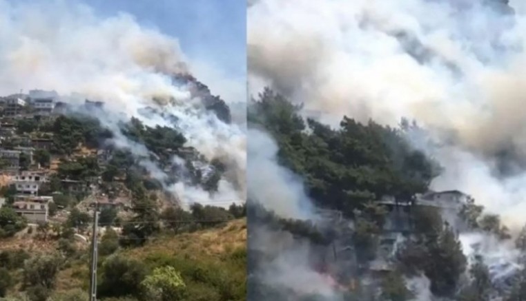 Rüzgarın da etkisiyle yayılan alevler, bölgedeki bazı evlere sıçradı.