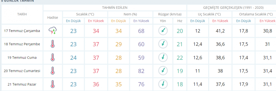 5 GÜNLÜK HAVA DURUMU