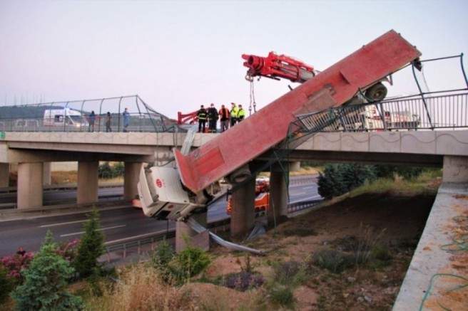 Köprüde asılı kalan TIR ise, bölgeye sevk edilen vinç yardımıyla köprü üzerinden kurtarıldı. TIR'ın TEM Otoyolu üzerine düşmeden kurtarılmasıyla facianın eşiğinden dönüldü.