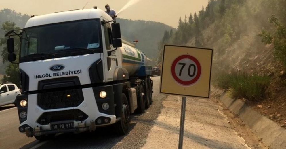 İnegöl Belediyesi, bölgeye hafta sonu araç ve ekipman sevk ederek çalışmalara katılmıştı. İnegöl ekibi, Manavgat'ta yurdun diğer bölgelerinden gelen ekiplerle birlikte alevlerle mücadelesini sürdürüyor. Pazar günü Başkan Alper Taban'ın talimatlarıyla İnegöl'den 20 tonluk tanker ve 2 personel ile hareket eden İnegöl Belediyesi ekibi, akşam saatlerinde Manavgat'a ulaşmıştı. Pazar akşamından bu yana ekibin ilgili birimler koordinesinde Manavgat bölgesinde yangınla mücadelesi sürüyor.