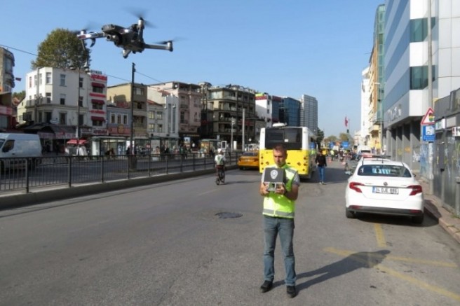 Denetime drone ile havadan da destek verildi. Denetimlerde yayalara öncelik vermediği tespit edilen araç sürücülerine ceza yazıldı.