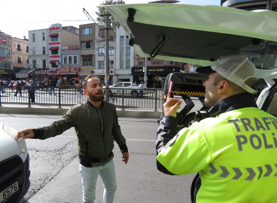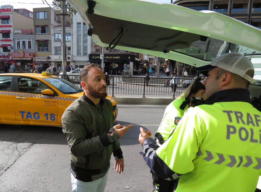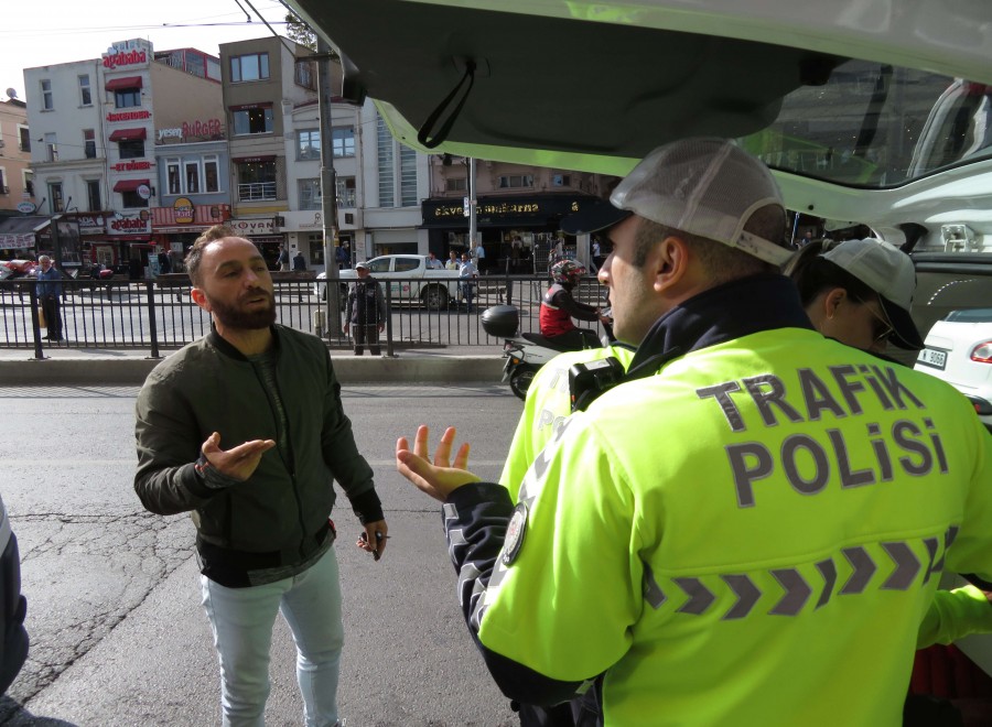 Denetimlerde ceza yazılan hafif ticari araç sürücüsü yayaya yol verdiğini söyleyerek yazılan cezaya itiraz etti.