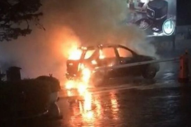 İtfaiye görevlileri yangını söndürürken, araç kullanılamaz hale geldi.
