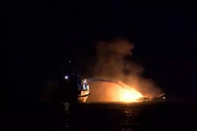 Yat, yangın söndürüldükten sonra kıyıya çekildi.