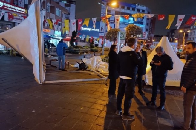 İYİ Parti Seçim Kampanyasından Sorumlu Genel Başkan Başdanışmanı, İYİ Parti eski İstanbul İl Başkanı Buğra Kavuncu İYİ Parti Esenler ilçe teşkilatının seçim standına saldırı yapıldığını ve standın dağıtıldığını açıkladı.