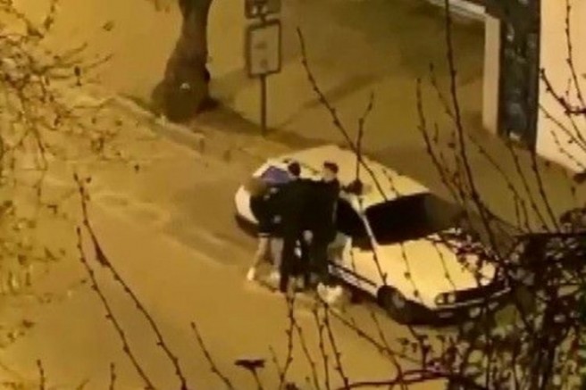 Bağırışmaların ardından, erkeklerden biri kadına yumruk ve tekmeler atarak dövmeye başladı.