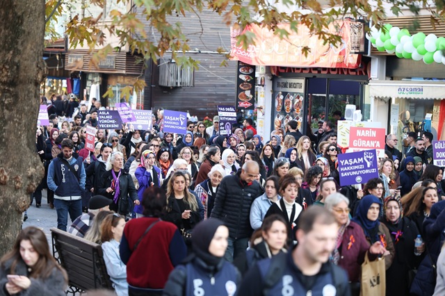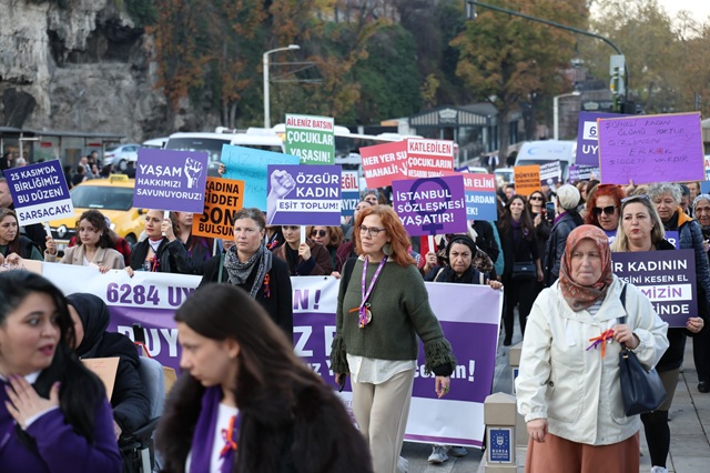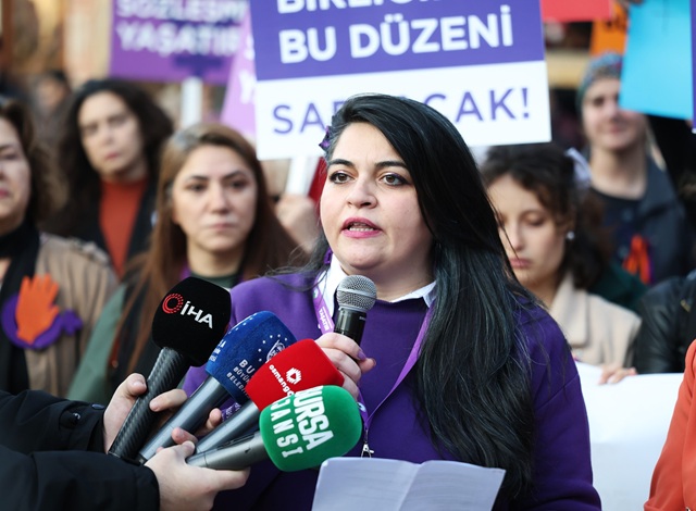 Bugün buradan bir kez daha ilan ediyoruz. Bir kişi daha eksilmeyeceğiz, erkek şiddetine boyun eğmeyecek, hayatlarımızdan, haklarımızdan ve özgürlüğümüzden vazgeçmeyeceğiz. İstanbul Sözleşmesi’ni istemekten vazgeçmeyeceğiz” şeklinde konuştu.