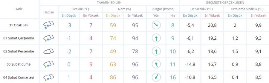 Parçalı ve çok bulutlu, bölge genelinin (Erzincan ve Ardahan dışında) aralıklı kar yağışlı geçeceği tahmin ediliyor. Kar yağışının bu akşam saatlerinde Muş ve Bitlis çevrelerinde yer yer kuvvetli olması bekleniyor.