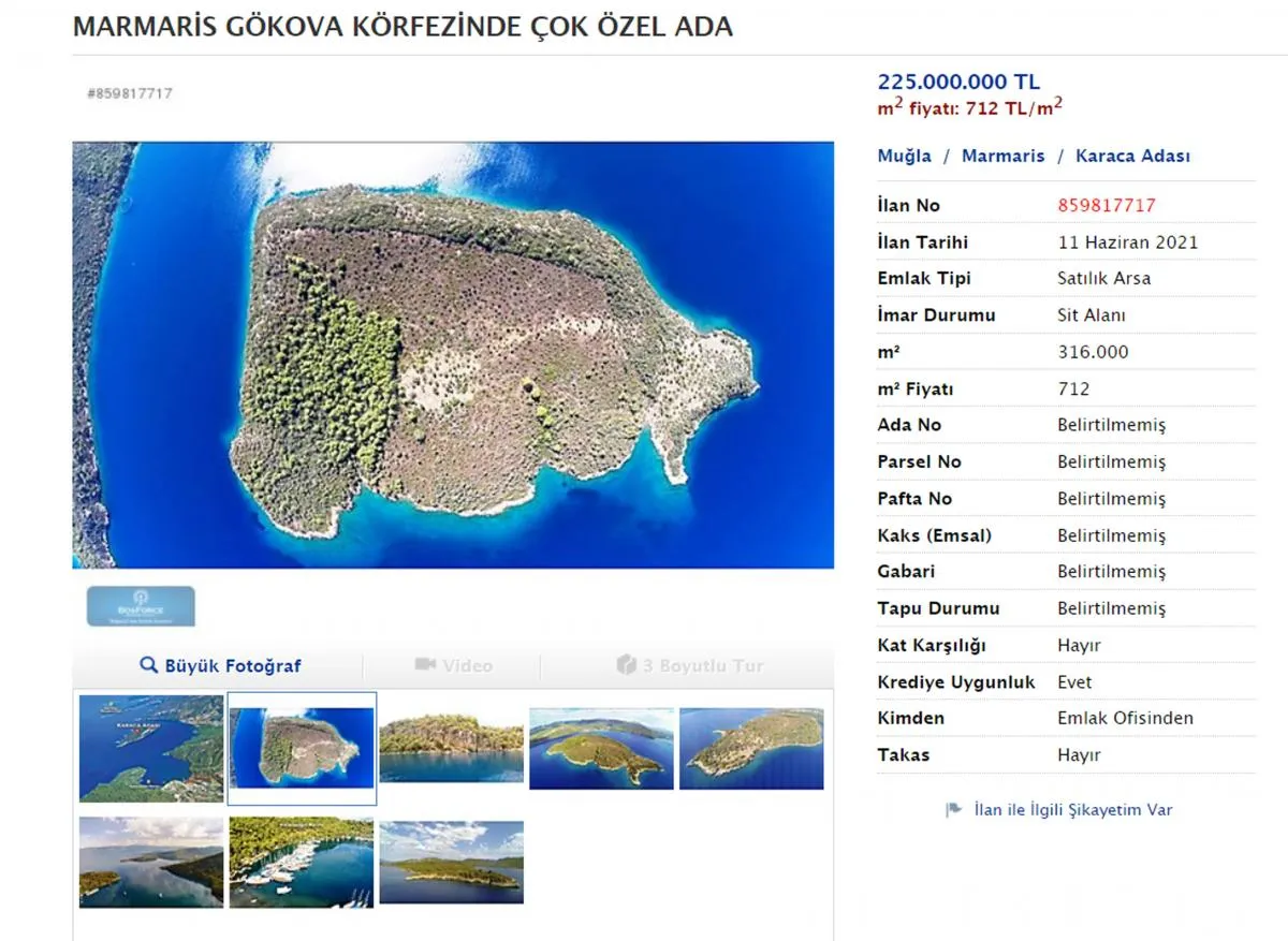 "Geçen yıl 3 teklif geldi. Fiyata dahi yaklaşılmadığı için teklifler kabul edilmedi. Araplar geldi, ilgilendi. Ancak özellikle Katarlılar çok defa gelip gittiler. Sonra onlar da vazgeçti. ABD'de yaşayan adanın sahibi dolar üzerinden adayı satmak istediği için fiyatı sürekli döviz kuruna bağlı olarak değişiyor. İlanda Türk Lirası olarak yayımladığımız için fiyat arttı. Adanın sahibi 25 milyon dolar istiyor" diye konuştu.