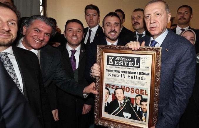 Kestel Belediye Başkanı Önder Tanır, AK Parti Kestel İlçe Başkanı Nesri Demir ve AK Parti Kestel İlçe Teşkilatı, AK Parti Grup Toplantısı’na katılmak üzere Ankara’ya gitti. Grup toplantısına katılan heyet, ardından Cumhurbaşkanı Recep Tayyip Erdoğan ile bir araya geldi. Kestel Belediye Başkanı Önder Tanır, AK Parti Bursa Milletvekilleri Ahmet Kılıç, Atilla Ödünç ve AK Parti Kestel İlçe Başkanı Nesri Demir, Cumhurbaşkanı Recep Tayyip Erdoğan’a anlamlı bir hediye verdi. Erdoğan’a, 19 Ocak 1999 yılında Kestel’de ki bir cemiyete katıldığı sırada çekilen fotoğrafı ve yerel bir gazetenin ‘Siyaset yapma yasağı bulunan T.Erdoğan Kestel’i salladı’ başlıklı gazete manşeti, Belediye Başkanı Önder Tanır ve Milletvekilleri Ahmet Kılıç, Atilla Ödünç ve İlçe Başkanı Nesri Demir tarafından kendisine takdim edildi. Anlamlı hediye karşısında büyük mutluluk yaşayan Cumhurbaşkanı Erdoğan, Bursa heyeti ile birlikte hatıra fotoğrafı çektirdi.