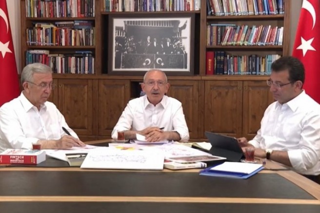 CHP Genel Başkanı ve cumhurbaşkanı adayı Kemal Kılıçdaroğlu, sosyal medyadan paylaştığı videolarına bir yenisini daha ekledi. 'Yiğitlerim' notuyla paylaşılan videoda İstanbul Büyükşehir Belediye (İBB) Başkanı Ekrem İmamoğlu ve Ankara Büyükşehir Belediye (ABB) Başkanı Mansur Yavaş da yer aldı.