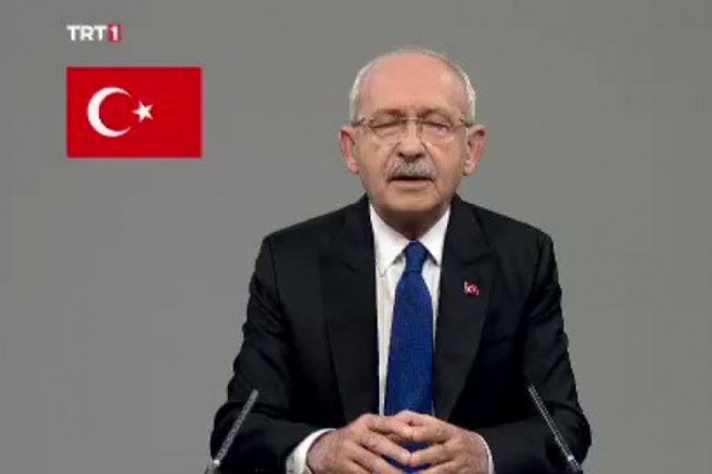 Millet İttifakı Cumhurbaşkanı adayı ve CHP Genel Başkanı Kemal Kılıçdaroğlu, TRT'deki propaganda konuşmasında; "Erdoğan, sana devletin televizyonu TRT'den sesleniyorum; gel, çekinme. İkimiz de er meydanına çıkalım. Devletin televizyonu TRT'de, senin istediğin gazetecilerin sorularını yanıtlayalım. İstersen halk da soru sorsun. Sen ki kendine reis dedirten, sen ki bir dünya lideri herhalde Bay Kemal'den çekinmezsin. E çık karşıma ve milletimiz, onun derdini bileni de o dertleri kimin çözebileceğini de bu vatanı kimin sevdiğini de görsün. Varsın, kararını versin" dedi.