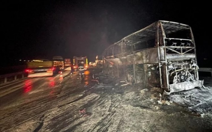 Kaanın ardından alev alan otobüste yangın çıktı.