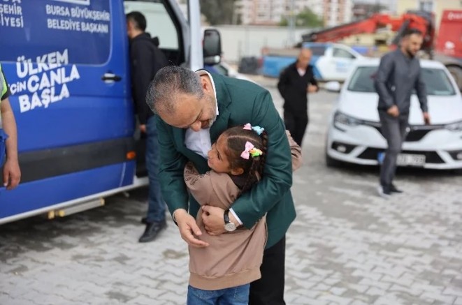 Asrın felaketinin ardından Hatay’da yaraların sarılması için yardımların dağıtımı, konteyner kentler ve tuvaletlerin kurulumu görevini üstlenen Bursa Büyükşehir Belediyesi’nin bölgedeki yoğun mesaisi hız kesmiyor. Zaman zaman Hatay’a gidip, sahadaki çalışmaları yerinde inceleyen Bursa Büyükşehir Belediye Başkanı Alinur Aktaş da bayram öncesi yine Hataylılarla buluştu.
