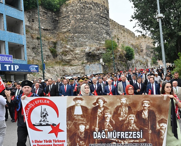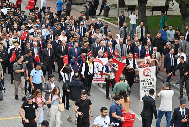 Bursa Büyükşehir Belediye Bandosu ve Bursa Mehter Takımı eşliğinde gerçekleşen yürüyüşe, Vali Erol Ayyıldız, Büyükşehir Belediye Başkanı Mustafa Bozbey, Bursa Garnizon Komutanı Tümgeneral Fedai Ünsal, CHP İl Başkanı Nihat Yeşiltaş, Osmangazi Belediye Başkanı Erkan Aydın, Nilüfer Belediye Başkanı Şadi Özdemir, Bursa milletvekilleri, Türkiye Muharip Gaziler Derneği Bursa Şubesi üyeleri, sporcular ve vatandaşlar katıldı. Kortejde Tahtakıran Kılıç Kalkan ekibi, gösterisiyle beğeni topladı. Yürüyüşün ardından Vali Erol Ayyıldız, Büyükşehir Belediye Başkanı Mustafa Bozbey ve Garnizon Komutanı Tümgeneral Fedai Ünsal tarafından Atatürk Anıtı’na çelenk sunuldu. Saygı duruşu, İstiklal Marşı’nın okunması ve Türk bayrağının göndere çekilmesinin ardından tören, Bursa protokolünün ve vatandaşların katılımıyla Ahmet Vefik Paşa Tiyatrosu önünde devam etti.