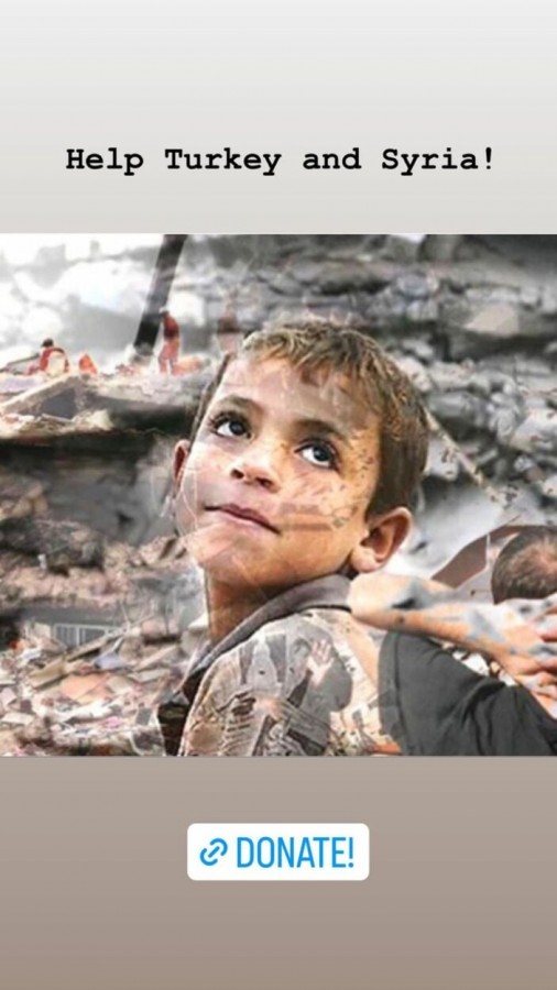 "Sevgililer Günü'nde herkes aşktan bahsediyor. Bu büyük depremde büyük kayıp ve yıkım yaşayan Türkiye ve Suriye'ye tüm sevgi ve şifa enerjimizi gönderelim.