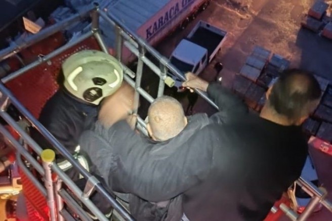 İtfaiye ekipleri, bir taraftan yangına müdahale ederken, bir taraftan da mahsur kalan bina sakinlerini merdivenli araç yardımıyla tahliye etti.
